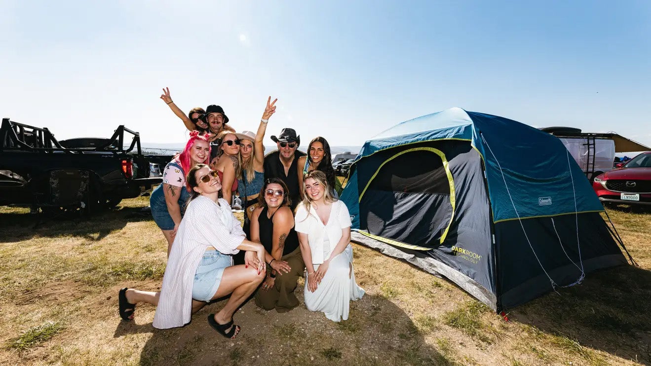 Tents, cars, vans, and RVs are welcome. Campsites are about 15' x 25'; larger setups require an additional Standard Camping ticket. Tent camping is also allowed in Premier, Terrace, The Grove RV Park, and Front Yard Camping with the appropriate pass.